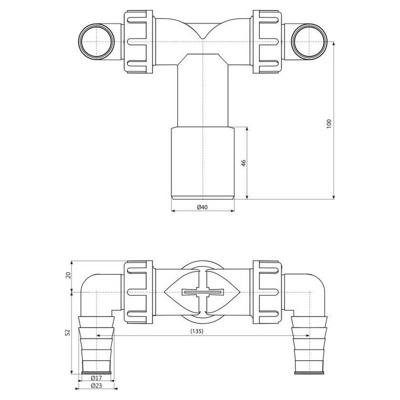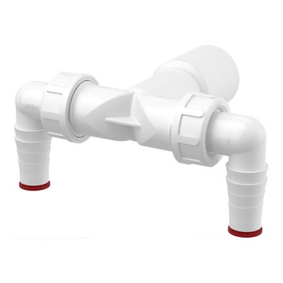 сифон для стиральной и посудомоечной машин с обратными клапанами, КОЛЕНО С ДВУМЯ ШТУЦЕРАМИ DN40/32 / 17–23 С ОБРАТНЫМИ КЛАПАНАМИ