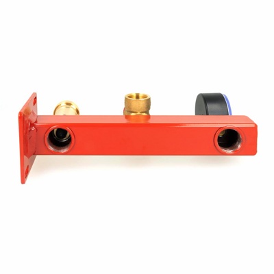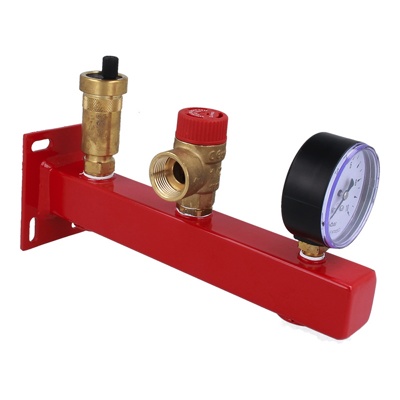 Данная группа безопасности изготовлена из стального профиля квадратного сечения. На конце располагается резьбовое отверстие для подключения расширительного бака объемом до 25 литров. Данная группа оснащена манометром, сбросным предохранительным клапаном и автоматическим воздухоотводчиком. Крепится на стене, выполняя роль прочного кронштейна для расширительного бака.